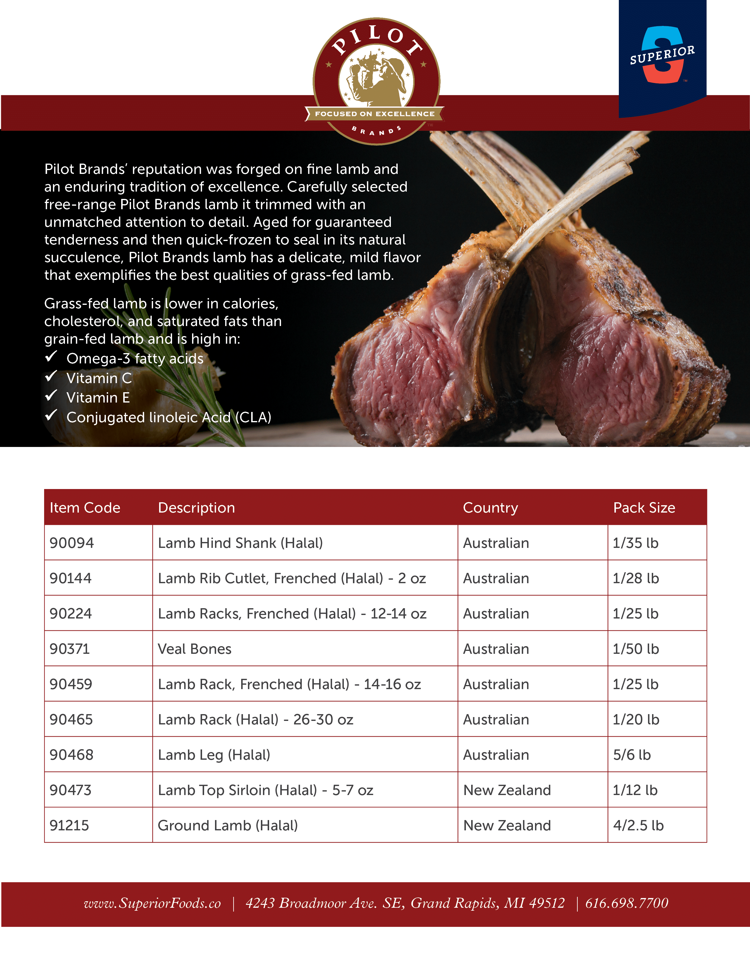 | 90448 | Lamb Racks, 14-16 oz | 1 | 12 lb |