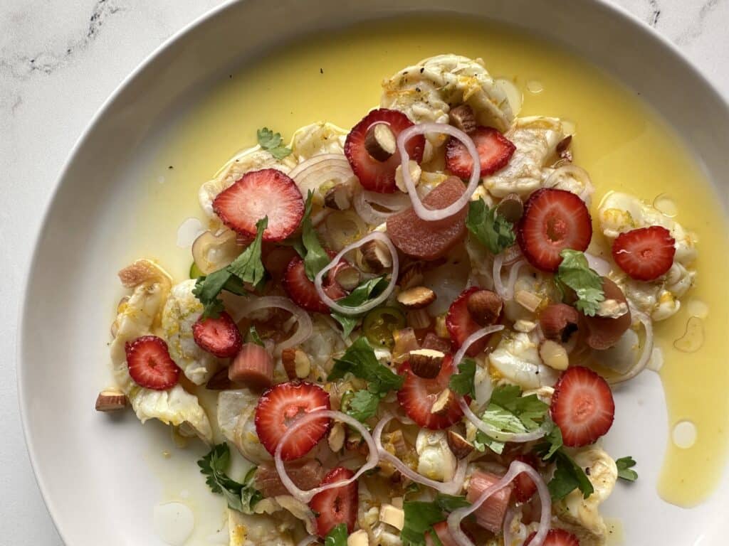 Strawberry Rhubarb Shrimp Ceviche